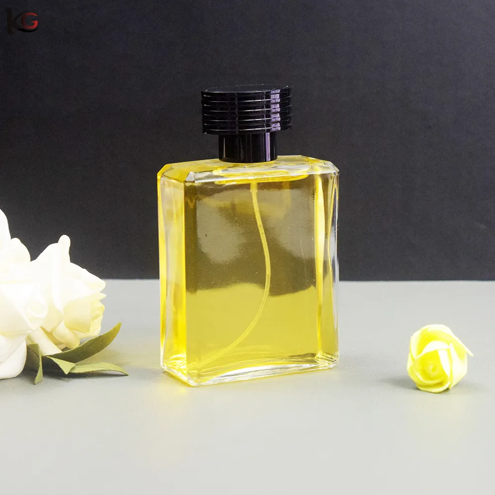 China Custom Flat Perfume Bottle 100ml with Zamac Cap