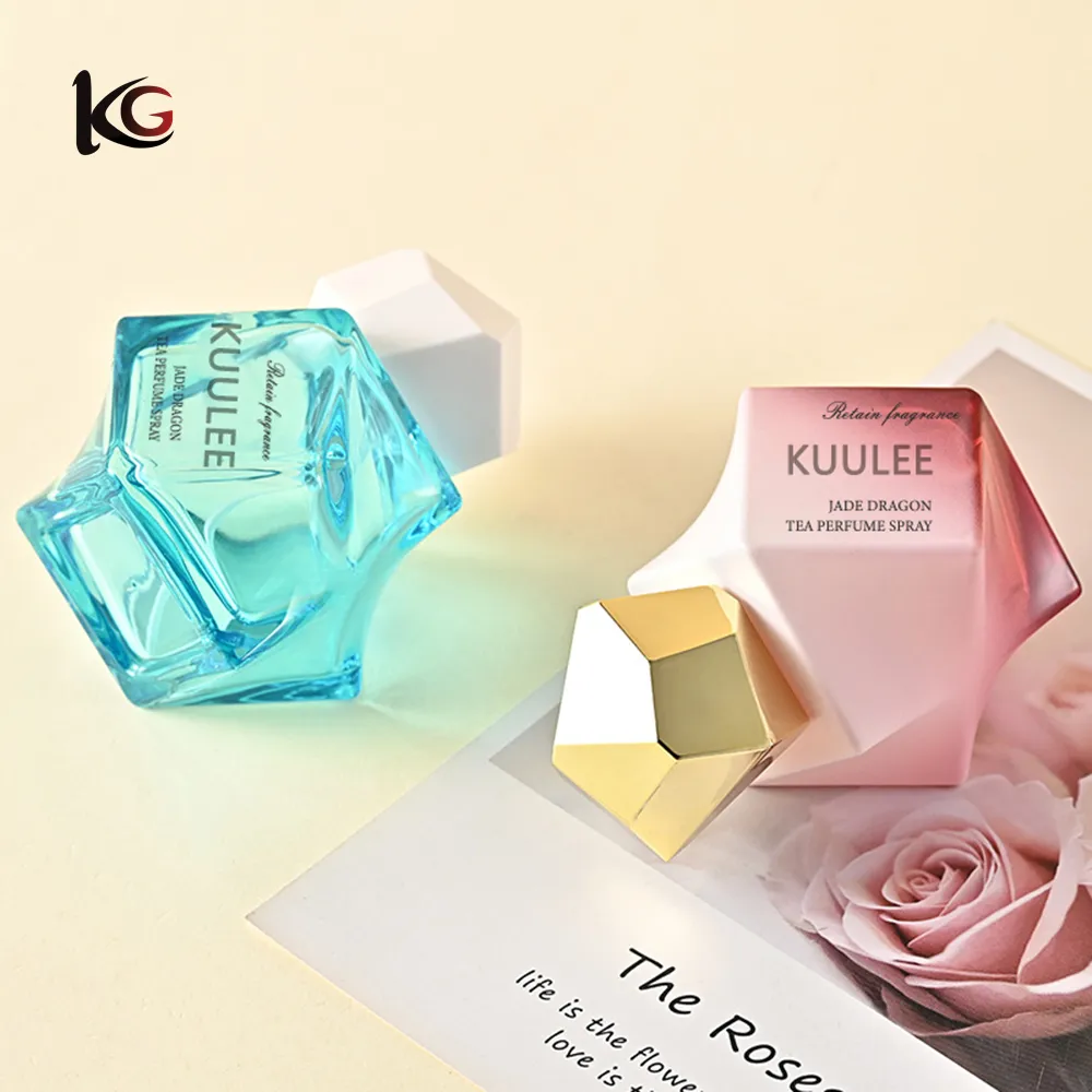 Unique Shape Perfume Bottle 50ml, Glass Refillable Atomizer with Pump Spray – Premium Empty Perfume Decanter, Luxury Cosmetic Bottle In Stock