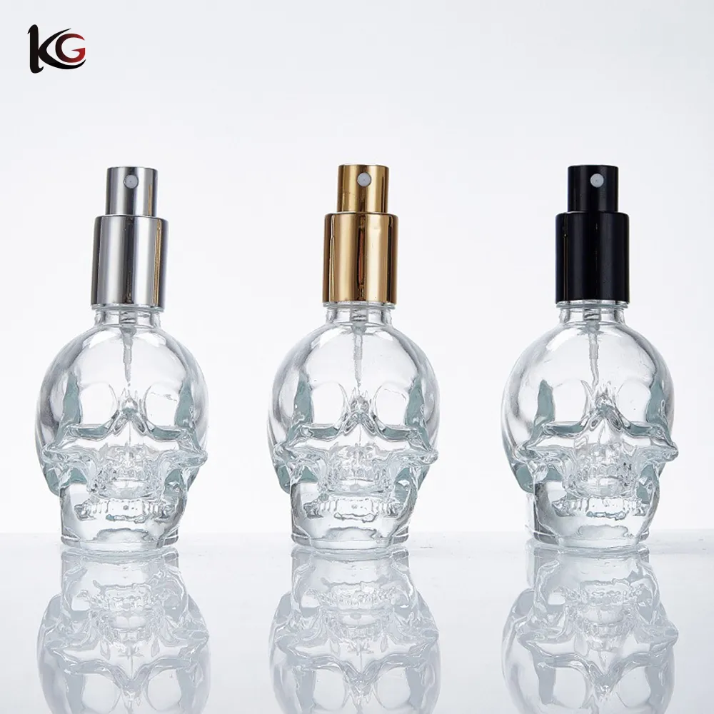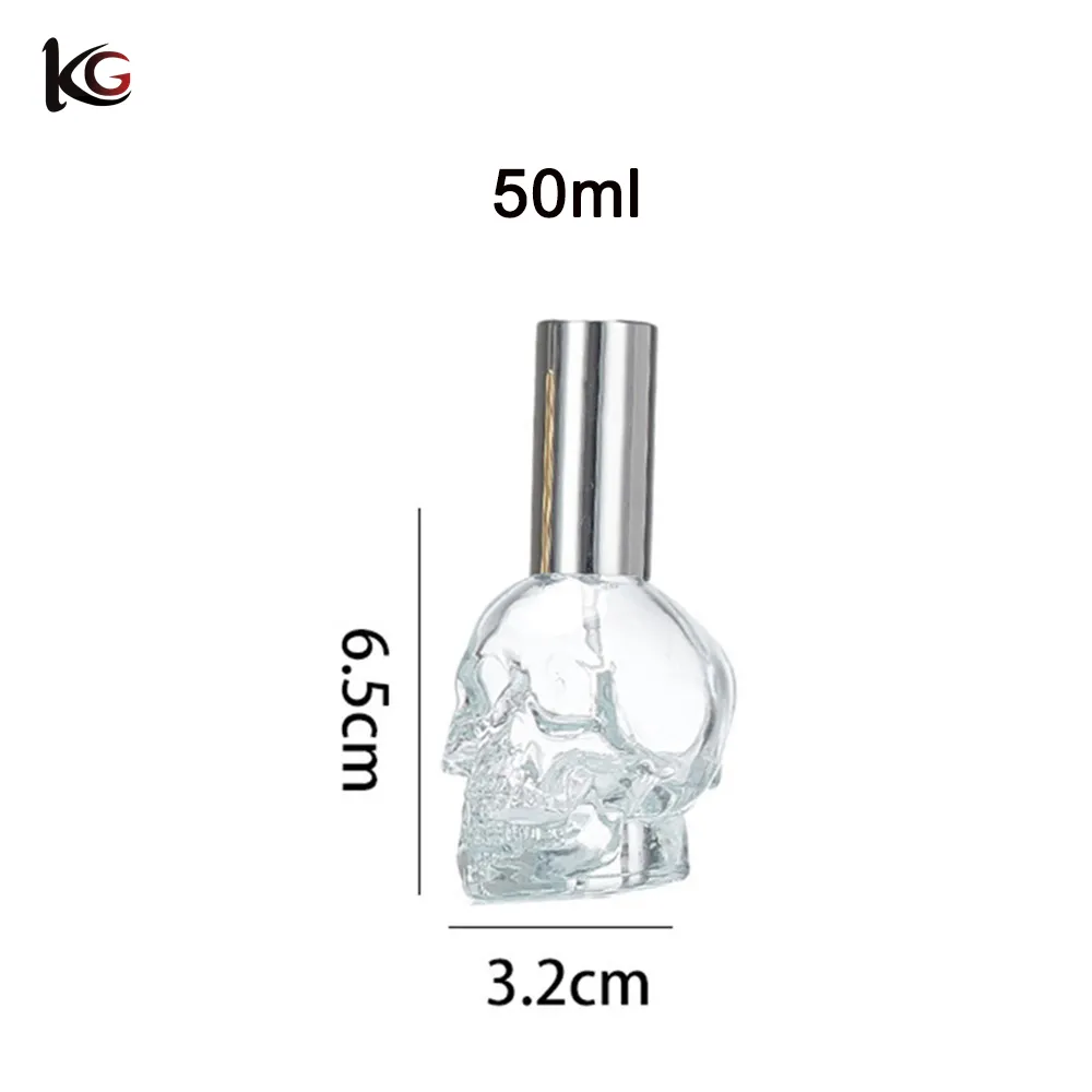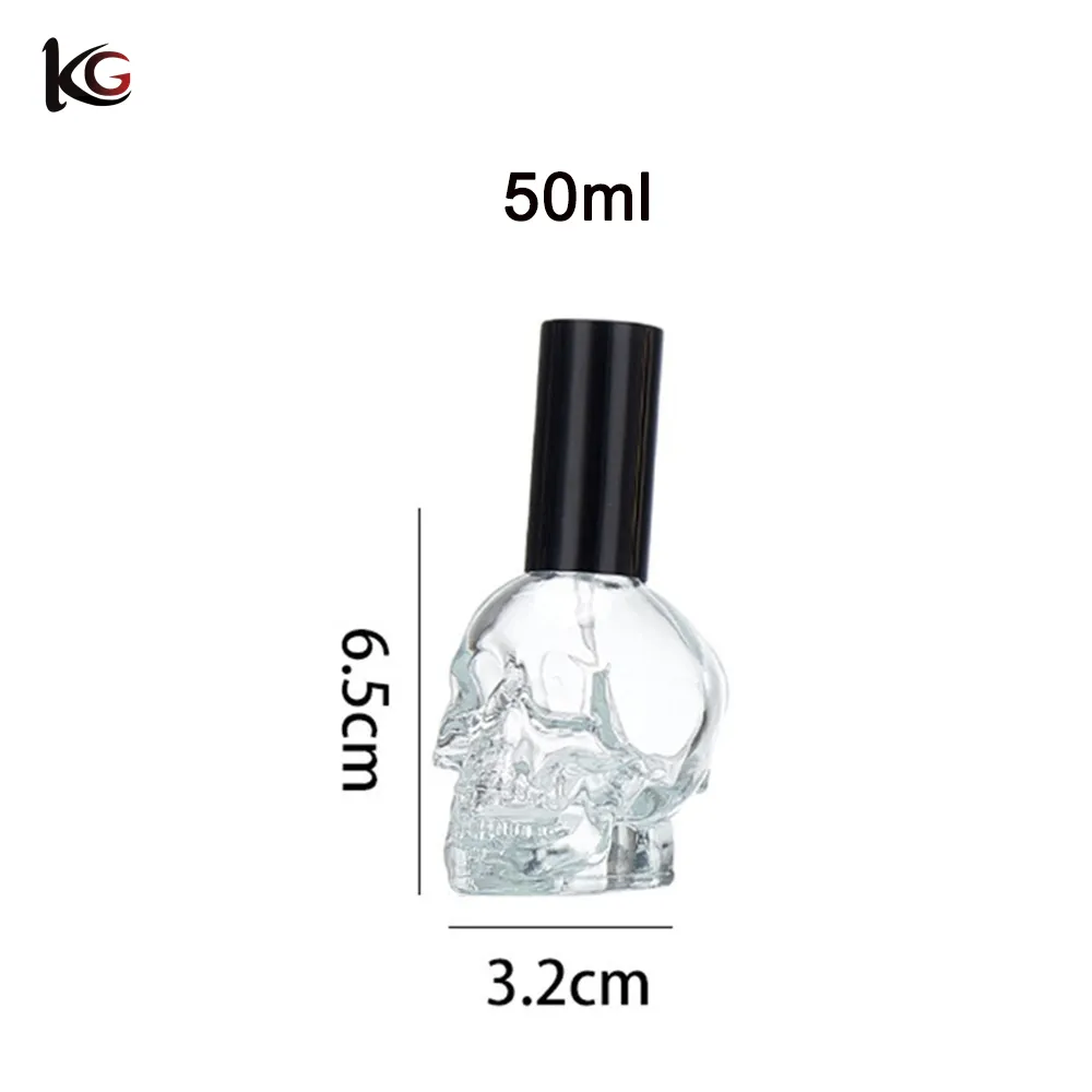 Skull Head Perfume Bottle 50ml, Refillable Glass Atomizer with Pump Spray – Gothic Cosmetic Jar for Fragrance, Lotion, Decanting